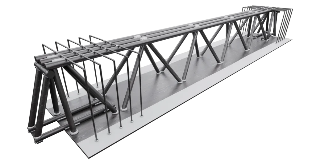 Autoportante in fase di montaggio e getto dell’impalcato con fondello inferiore in acciaio.